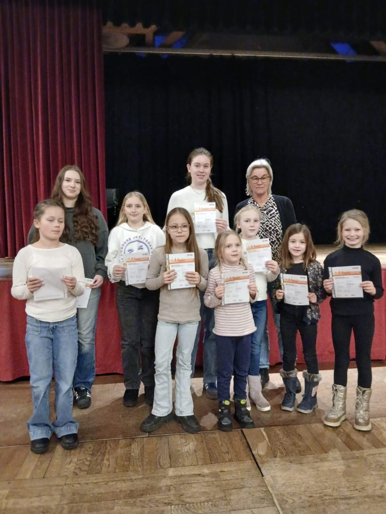 Malte Hohls belegte im Rennen bis 9 Jahre über 1500 m nach einem packenden Endspurt um 1 Sekunde hinter dem Sieger Platz 2. Seine Trainingskollegen Hennes Knoop, Hendrik Hohls, Fiete Ohlhoff und Arne Habermann mussten die 3000 m Strecke bewältigen. Hier konnte man bei allen bereits die Fortschritte des Crosstrainings feststellen. In der Wertung der Altersklasse 10-15 Jahre siegte Hennes vor Hendrik /3. , ihnen folgten Fiete Ohlhoff /4. Und Arne Habermann/5. Bei den Schülerinnen kam Alea Cordes auf Platz 2 und Enna Krüger auf Platz 3. Sam und Tamme Cordes vervollständigten das Schülerfeld mit Platz 7+8.