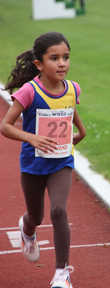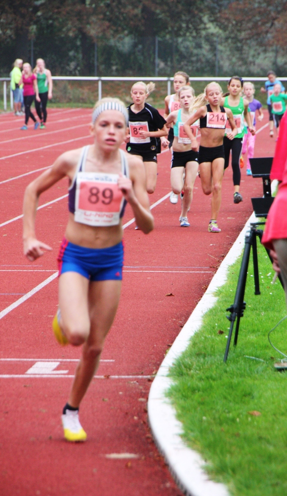 Mit Spannung blickte man auf das 800 Meter Rennen der Mädels W 11 entgegen. Marie Dehning wollte ohne Pacemaker den Bezirksrekord angreifen. Die erste Runde wurde in verabredeten 75 Sekunden zurückgelegt. Da sie das Tempo bis zum Schluss durchhalten konnte, gehörte der neue Rekord ihr (2:31,82 min).