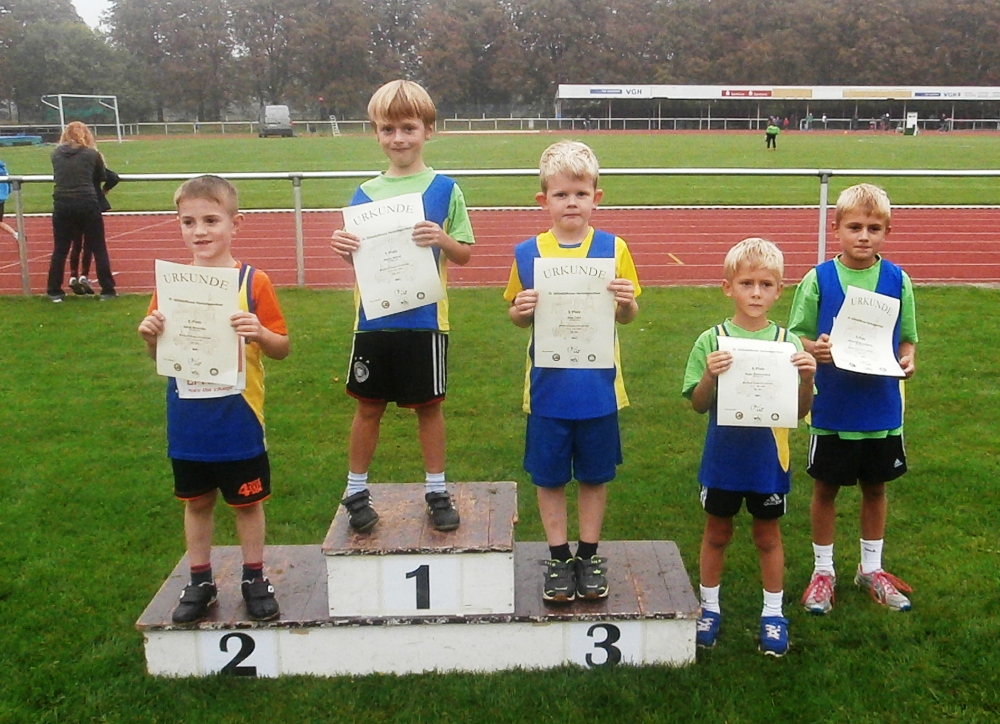 stellte damit einen Vereinsrekord auf. Jonah Helms gewann den 800 m Lauf der zehnjährigen Jungen mit 2:58, 13 min. Zusammen mit Lennart Böhm vollbrachte er weitere gute Leistungen. Jonah sprintete mit 8,36 sec auf Platz 2, Lennart wurde Fünfter mit 8,60 sec, im Weitsprung kamen die Jungen mit 3,56 m und 3,31 m auf die Plätze drei und vier, der Ballwurf endete mit 33,50 m und 31,00 m (Plätze 2 und 3). Der Sieger im Dreikampf der Sechsjährigen hieß Henry Böhm, Er wies zwei Punkte mehr auf als Dylan. Es folgten Justus Pinkert und Keke Sonnenberg. Bei den Jungen M 8 wurde Joris Hoheisel Vierter im Dreikampf, Jona-Ole Sonnenberg belegte Platz sieben.