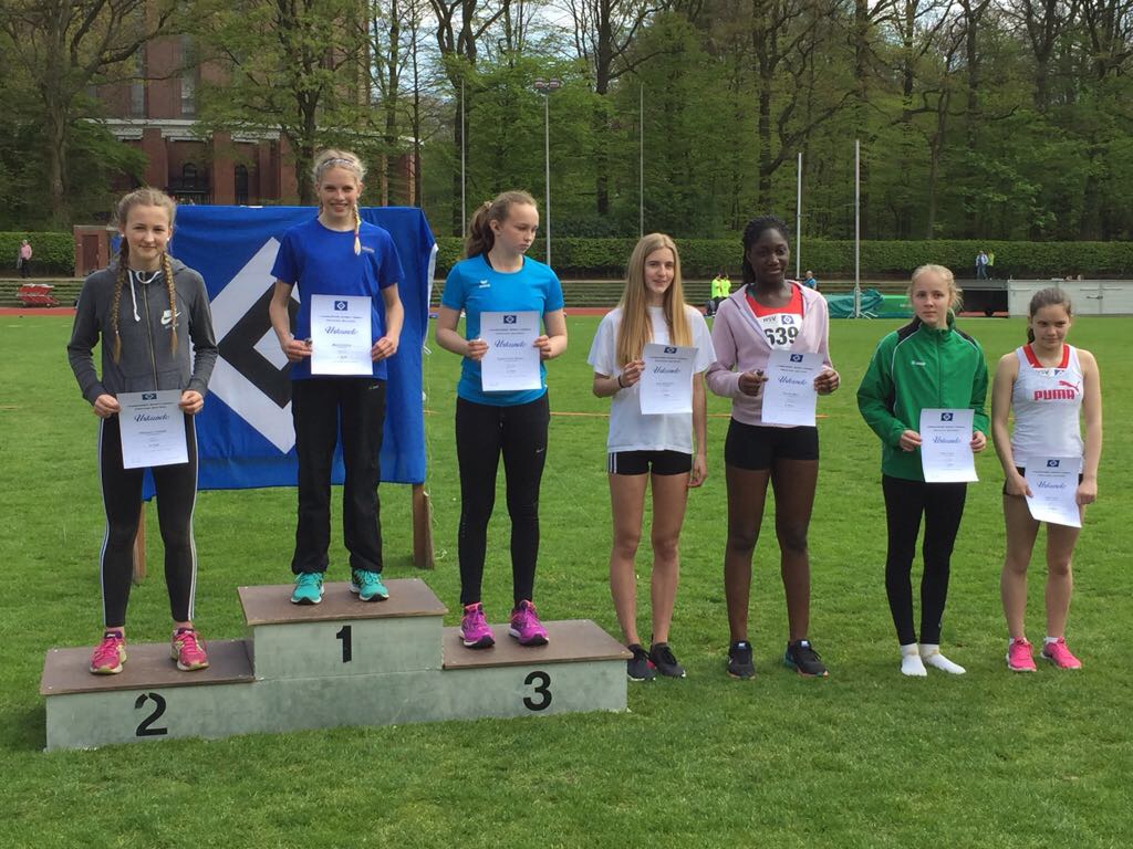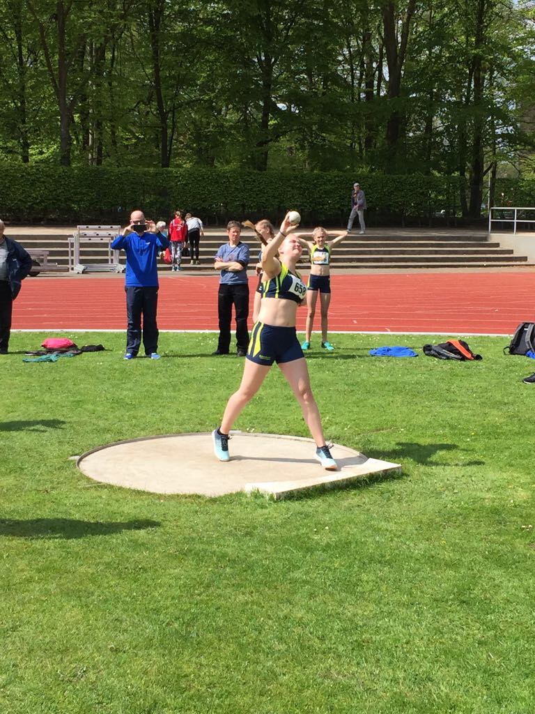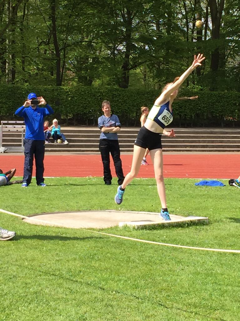 Ebenfalls einen guten Wettkampftag erwischte Esther (W15), die mit 4,92m im Weitsprung nur wenige Zentimeter zur Bestleistung fehlten und auch im Hochsprung fand sie mit 1,45m fast zu alter Stärke zurück. Weiter liefe die talentierte Sportlerin über die 100m in 14,28s, die 80m Hürden 14,25s gute Zeiten und erzielte im abschließenden 300m in 45,34s einen neuen Hausrekord.