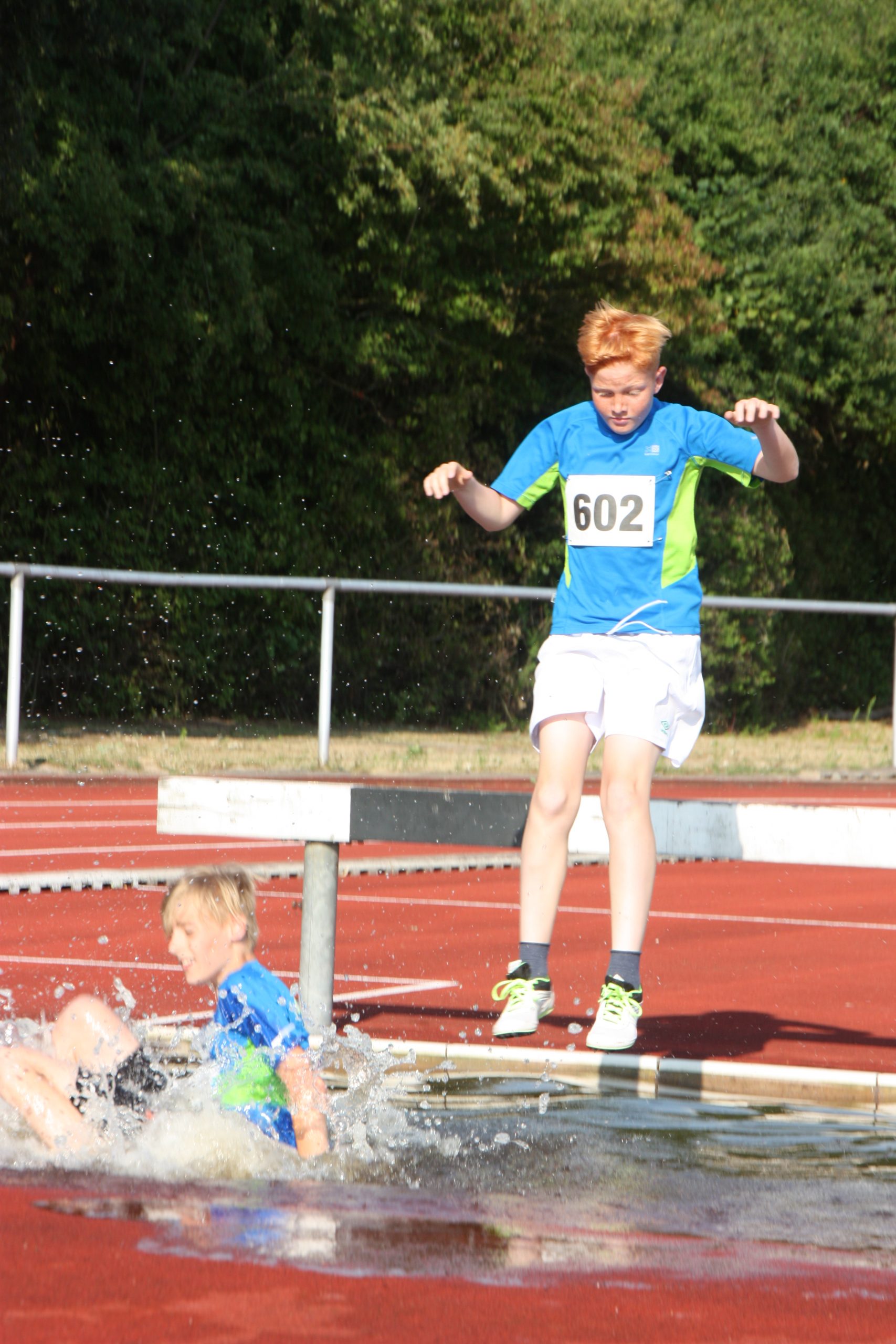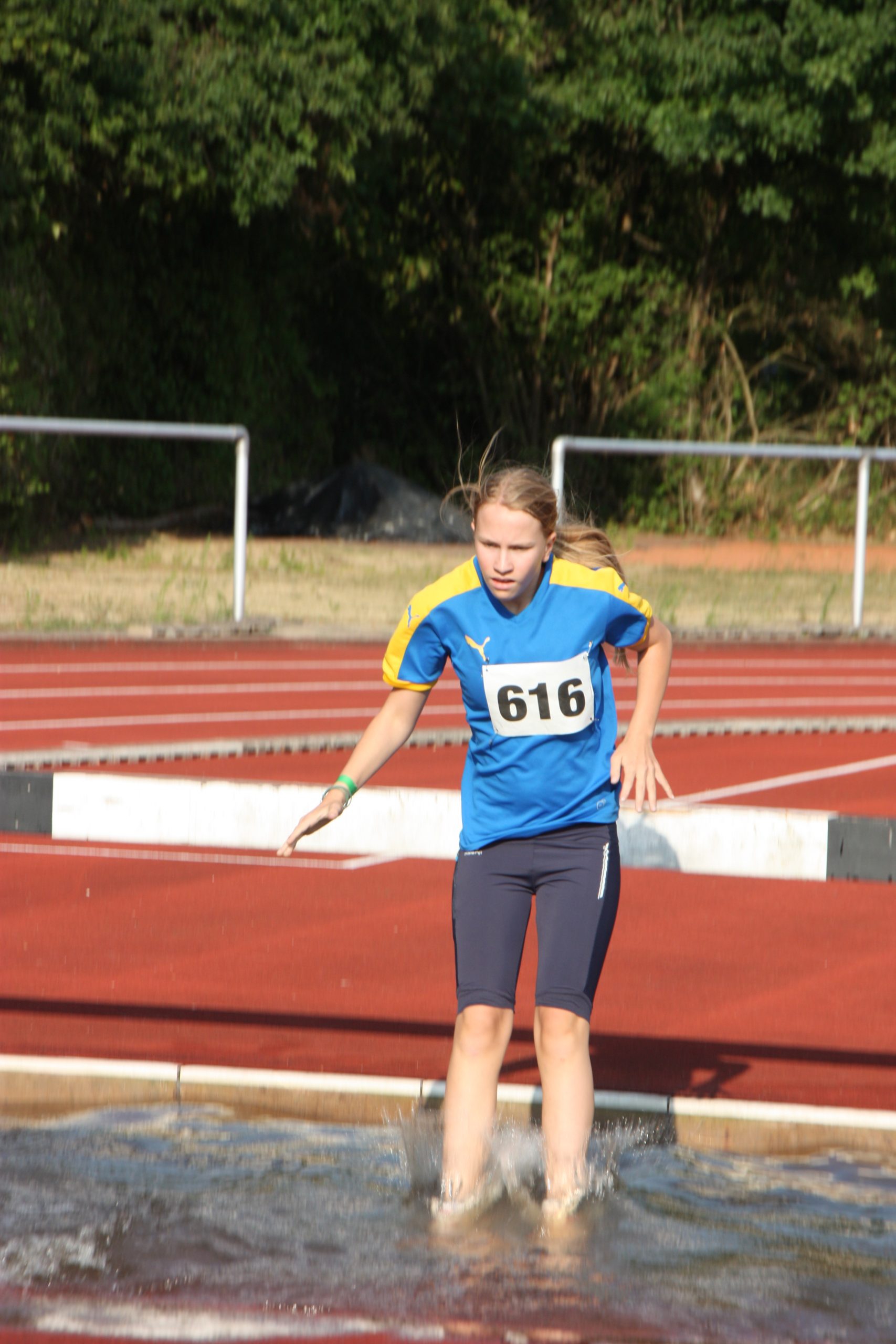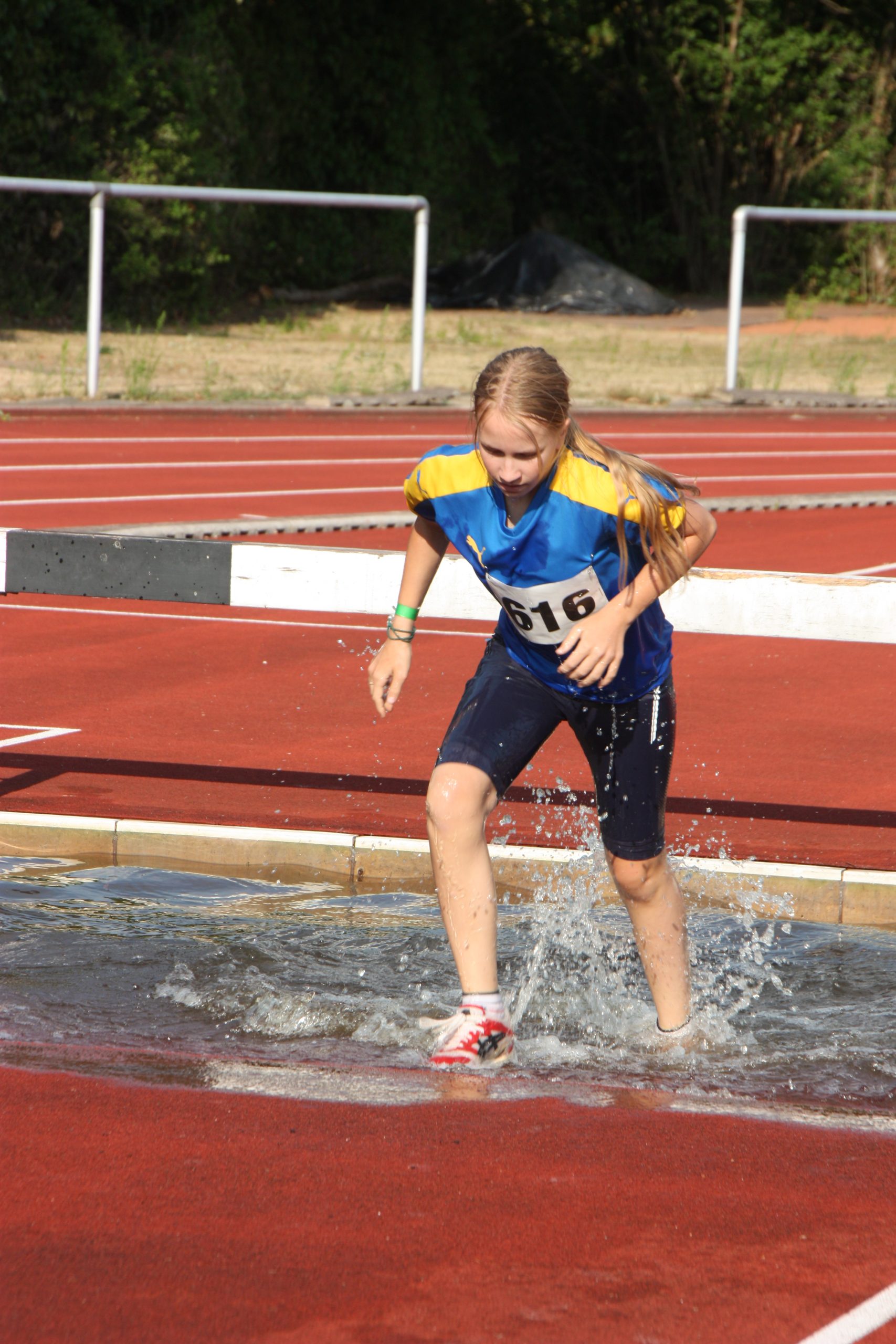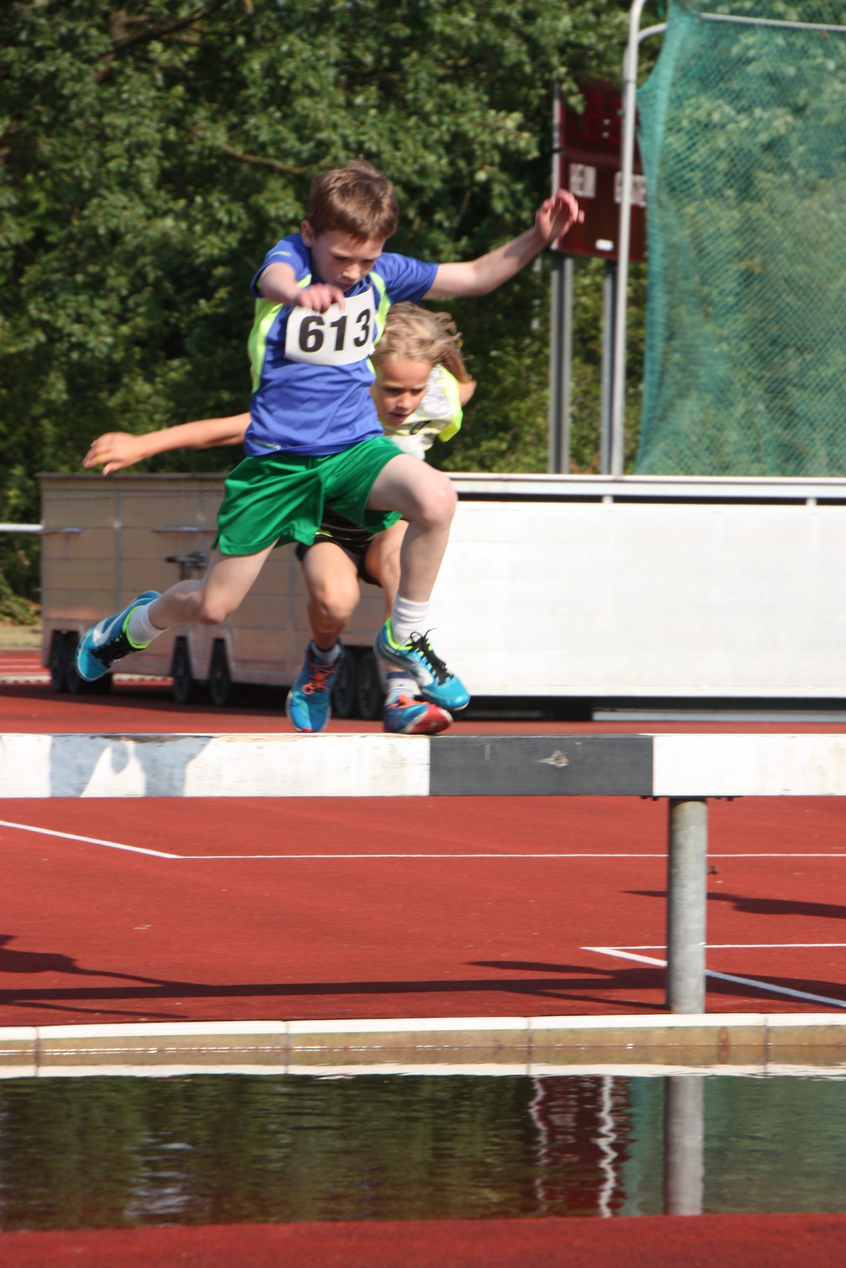 Noch nicht ganz. Die Leichtathletikabteilung des TuS Bergen hatte für ihre Schüler und Jugendlichen noch ein Highlight auf dem Programm. Wer Lust und Zeit hatte wurde angemeldet und dann gings los. Das Wetter war super für diese Art von Wettkampf, naß werden gehört hier dazu. Einmal über das Hindernis mit Wassergraben….. leichter gesagt als getan. Die jungen Athleten konnten hier hautnah erfahren, dass das, was im Fernsehen immer so leicht aussieht, am Ende hartes Training braucht. Aber hier stand der Spaß im Vordergrund und den hatten alle!