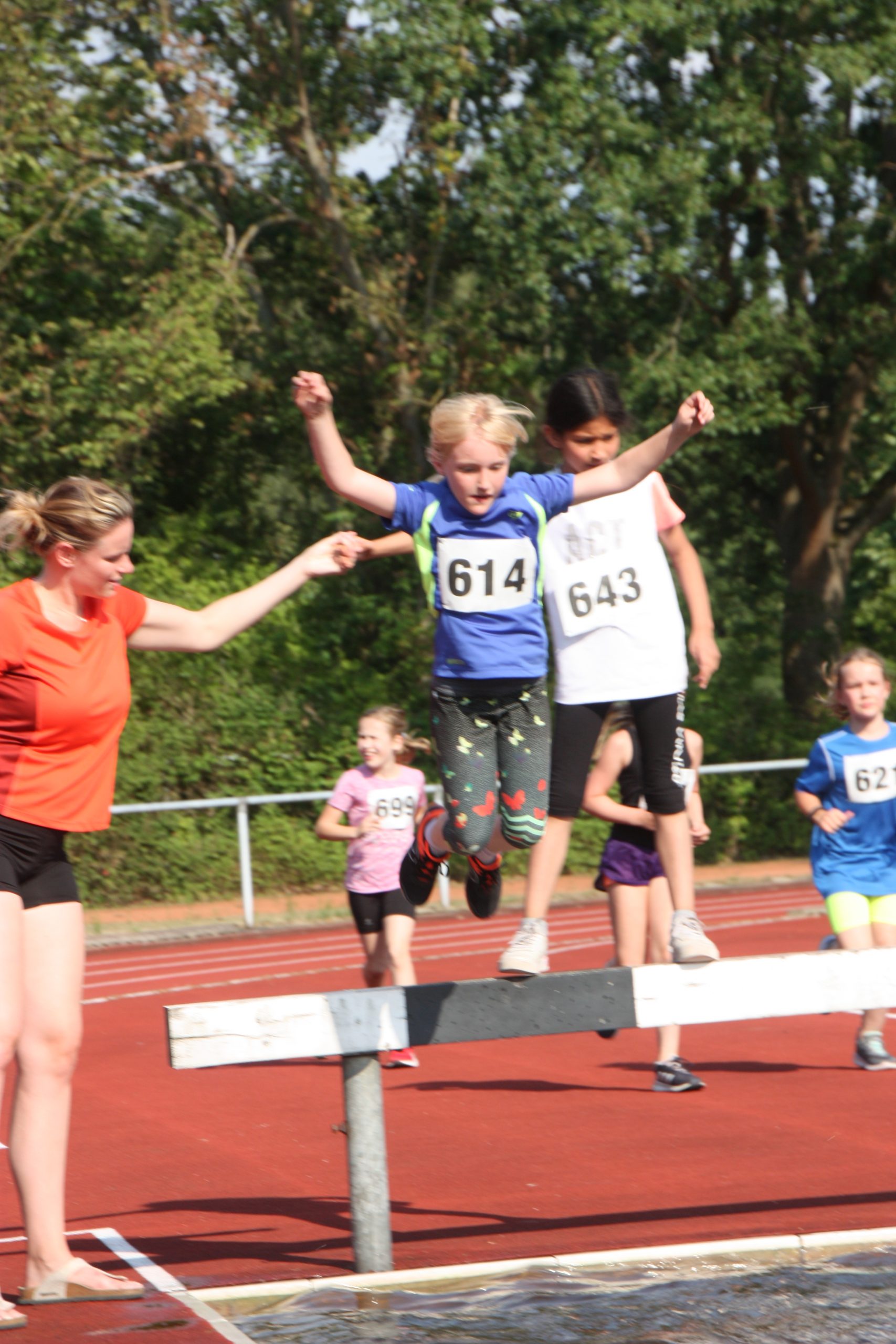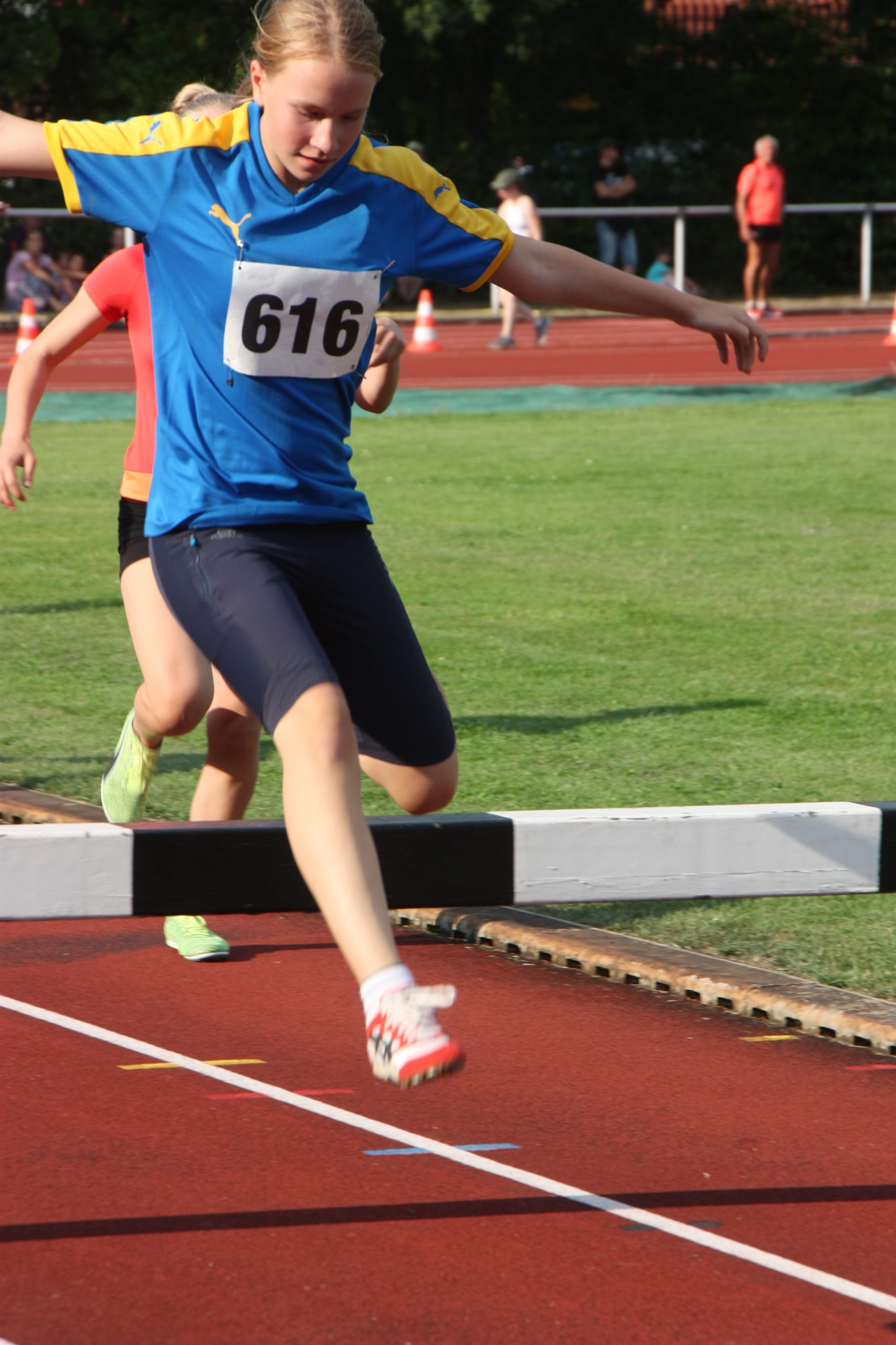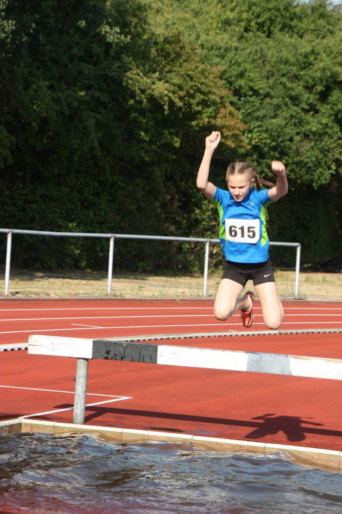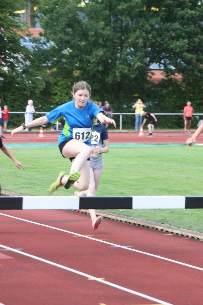 Für viele junge Athleten (U10 und U12) war es teilweise der erste Wettkampf, so dass eine gewisse Aufgeregtheit bei den Kindern nicht zu übersehen war. Aber alle haben sich hervorragend geschlagen. Bei den Schülerinnen belegten Katharina Langelüddecke in der W8 mit dem einen Start/Zielsieg den 1. Platz in 3:17,5 Min. und Mira Frieling, die den 3. Platz schon fast sicher hatte, wurde auf der Ziellinie überspurtet und wurde 4 in 3:35,8 Min. In der W 9 stellte Anastasia Mertin ihr Können unter Beweis und wurde 1. in 3:18,3 Min.Bei den Läuferinnen W 10 kam die Sprinterin Lis Rodemann auf der für sie ungewohnt langen Strecke in 3:37,6 Min ins Ziel. Alena Frieling verpasste die 3 Minuten Marke nur knapp und belegte Platz 3 in 3:02 Min. Lennja Greve W13 freute sich im Ziel, da sie mit 2:54,8 Min. das erste Mal unter die 3 Minuten Marke kam und sich die Vizemeisterschaft erlief. Ylvi Köster , die lieber längere Strecke bevorzugt, km in 3:15 als 4. ins Ziel.