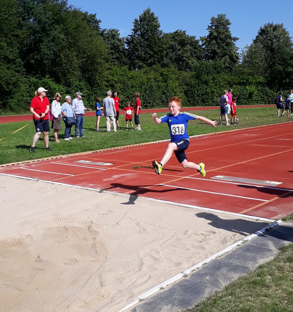 Am letzten Wochenende ging es für einige kleine und größere Athleten des TuS Bergen/LG Celle-Land endlich mal wieder zu einem Wettkampf. In Bad Bevensen wurde ein Schülermehrkampf ausgerichtet, an dem wir teilnehmen durften. Für viele der mitgereisten Kinder war es der erste Mehrkampf überhaupt und entsprechend groß war bei einigen auch die Aufregung. Bei den Schülerinnen W 7 belegte Emily Lühmann den 1. Platz, wobei ihre Zeit über 50 m von 9,87 sec. herauszuheben ist. So schnell haben wir Emily noch nicht gesehen. Henrieke Optenhöfel belegte mit Platz 3 auch einen der begehrten Podestplätze.Bei den Mädchen W9 belegten unsere Mädels sehr gute Plätze in einem großen Teilnehmerfeld. Lis Rodemann schoß mit ihren Leistungen von 7,86 sec/50 m und 3,73 m Weit den Vogel ab. Sie belegte Platz 1. Alisa Ohlhoff konnte ebenfalls mit 8,74sec./3,33 m Weit/14,50m Ball einen der begehrten Podestplätze ergattern (3.), sowie Laura Segulla Adler, die mit dem 6. Platz das tolle Mannschaftsbild komplettierte. In der ebenfalls sehr großen Gruppe der Mädchen W 11 belegte Alena Frieling einen guten Platz im Mittelfeld.Bei den Jungen gingen in der M9 Hugo Tranter, Aiden Horan und Konstantin Lindloff an ihren ersten Mehrkampfstart. Ist doch was anderes als Training, sich mit den Kindern aus anderen Vereinen zu messen. Hugo, erst seid kurzem dabei, zeigte schon mal was von seinem Potenzial und belegte den 5. Platz, Konstantin/7. und Aiden/8. folgten ihm. Auch in der M 10 vertrat Hinnerk Optenhöfel seinen Verein gut. Mit 8,39 sec./3,62 m/ 23 m Ball belegte er Platz 5. In der M 11 kam Lucas Adler Sekura auf einen 6. Platz.In der Alterklasse U14 konnte sowohl einen 3 als auch einen 4 Kampf machen. Hier war in der W12 Lennja Greve unterwegs, die sich jeweils nur einer Starterin des BTB Oldenburg unterordnen musste. Sie wurde in beiden Mehrkämpfen 2. Bei den männlichen Teilnehmern belegte Vincent Marcks nach einem guten Wettkampf Platz 2 im Dreikampf und Platz 3 im Vierkampf. Bei der weiblichen U16 belegte Estefania Gossing in der W14 im Vierkampf mit dem 5 Platz eine gute Platzierung im vorderen Feld. Es war ein aufregender Nachmittag für alle und die Trainer waren sehr zufrieden, allerdings machte sich bei einigen Athleten schon wieder der Ehrgeiz bemerkbar. So soll es sein.