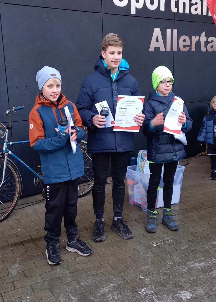 Malte Hohls belegte im Rennen bis 9 Jahre über 1500 m nach einem packenden Endspurt um 1 Sekunde hinter dem Sieger Platz 2. Seine Trainingskollegen Hennes Knoop, Hendrik Hohls, Fiete Ohlhoff und Arne Habermann mussten die 3000 m Strecke bewältigen. Hier konnte man bei allen bereits die Fortschritte des Crosstrainings feststellen. In der Wertung der Altersklasse 10-15 Jahre siegte Hennes vor Hendrik /3. , ihnen folgten Fiete Ohlhoff /4. Und Arne Habermann/5. Bei den Schülerinnen kam Alea Cordes auf Platz 2 und Enna Krüger auf Platz 3. Sam und Tamme Cordes vervollständigten das Schülerfeld mit Platz 7+8.