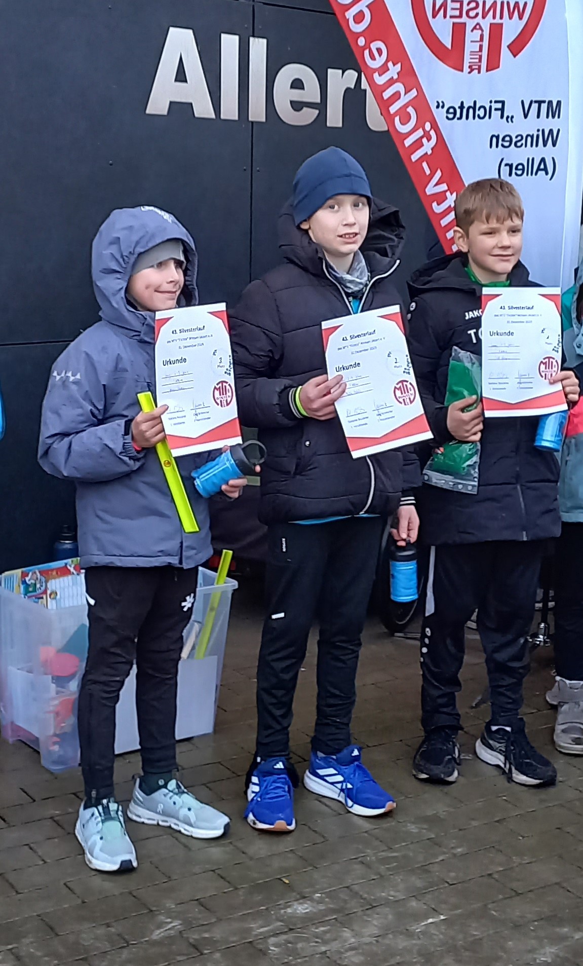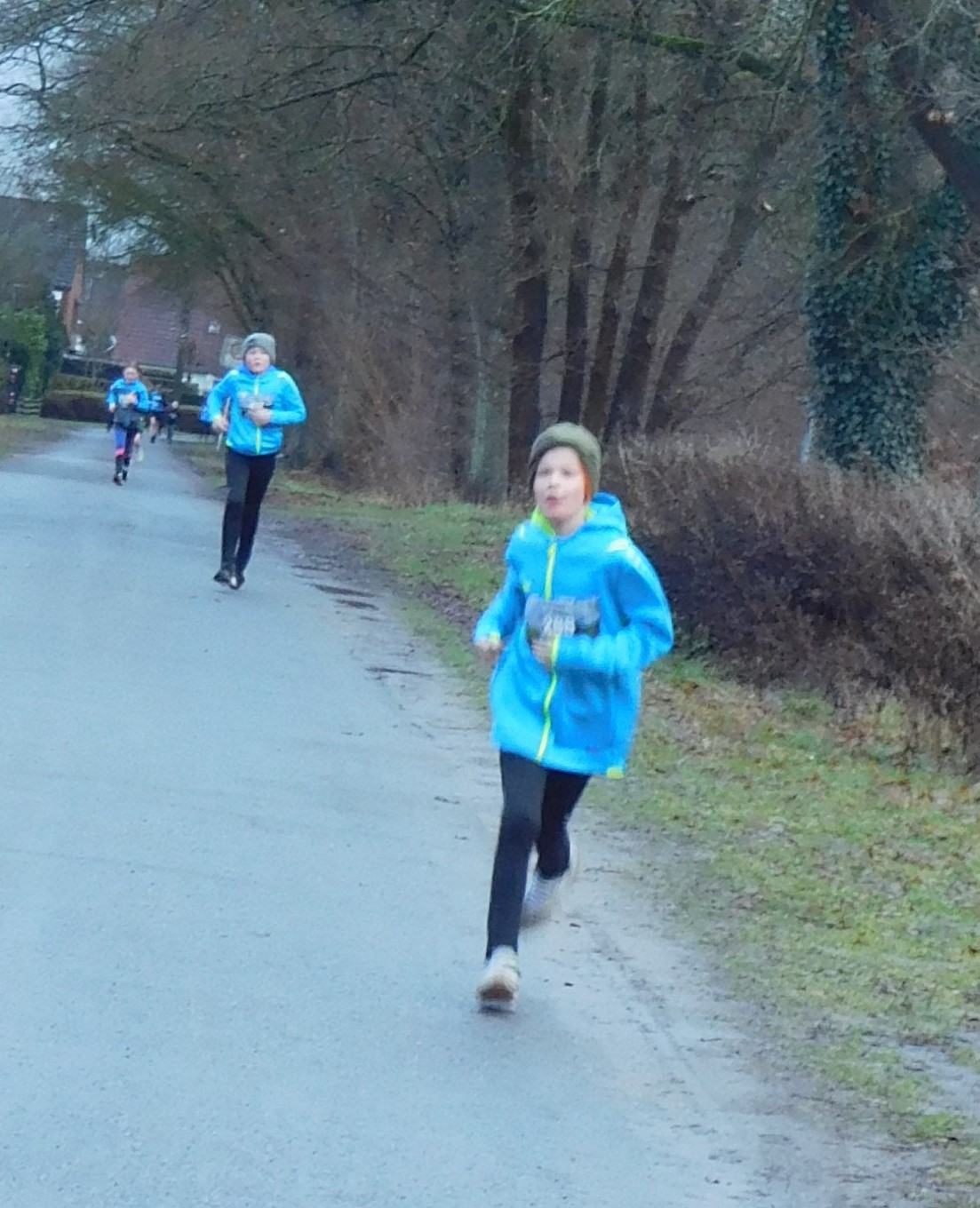 Malte Hohls belegte im Rennen bis 9 Jahre über 1500 m nach einem packenden Endspurt um 1 Sekunde hinter dem Sieger Platz 2. Seine Trainingskollegen Hennes Knoop, Hendrik Hohls, Fiete Ohlhoff und Arne Habermann mussten die 3000 m Strecke bewältigen. Hier konnte man bei allen bereits die Fortschritte des Crosstrainings feststellen. In der Wertung der Altersklasse 10-15 Jahre siegte Hennes vor Hendrik /3. , ihnen folgten Fiete Ohlhoff /4. Und Arne Habermann/5. Bei den Schülerinnen kam Alea Cordes auf Platz 2 und Enna Krüger auf Platz 3. Sam und Tamme Cordes vervollständigten das Schülerfeld mit Platz 7+8.