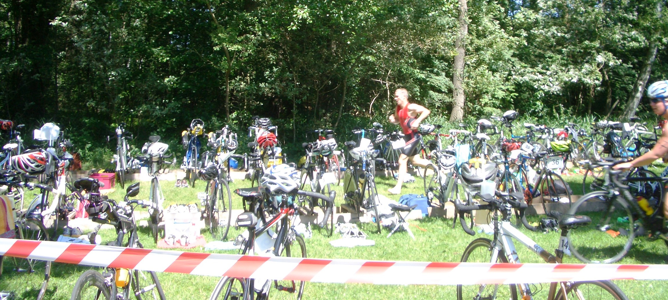 Stefanie Liedke, unsere beste Schwimmerin, wurde beim Gedränge im Wasser mit einem Schlag in die Magenkuhle fast außer Gefecht gesetzt. Nachdem atemtechnisch im Kraulstil gar nichts mehr ging, wechselte sie nach einigen Metern auf Rückschwimmen um und wurde nach dem Schock in der Einzelwertung bei ihrem 2. Triathlon in 1.17 auf Platz 4 bei den Frauen belohnt.